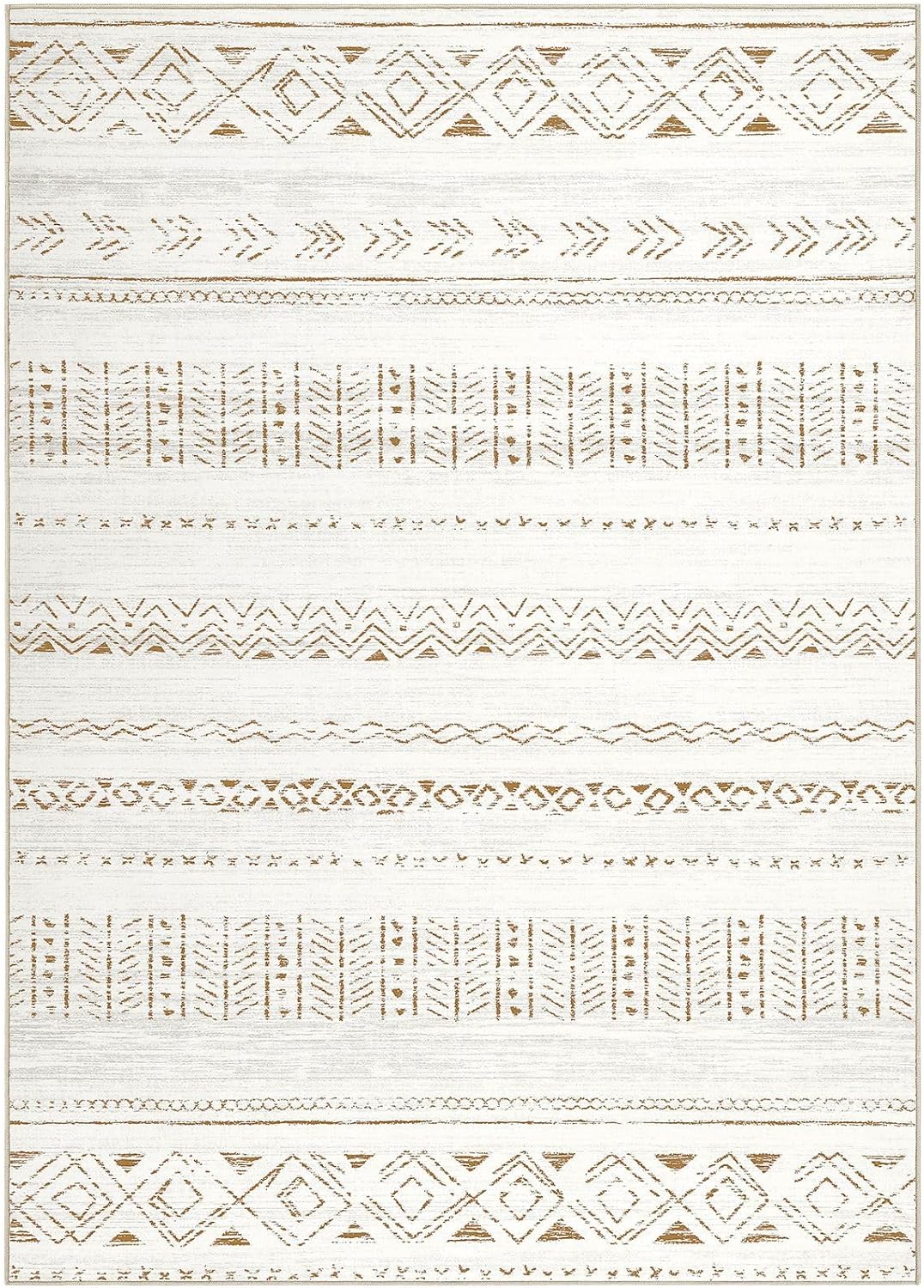 Large Living Room Area Rug 5×7: Soft Machine Washable Boho Moroccan Farmhouse Rugs for Bedroom Under Dining Table – Non-Slip Neutral Morden Indoor Floor Carpet for Home Office – Brown/Cream