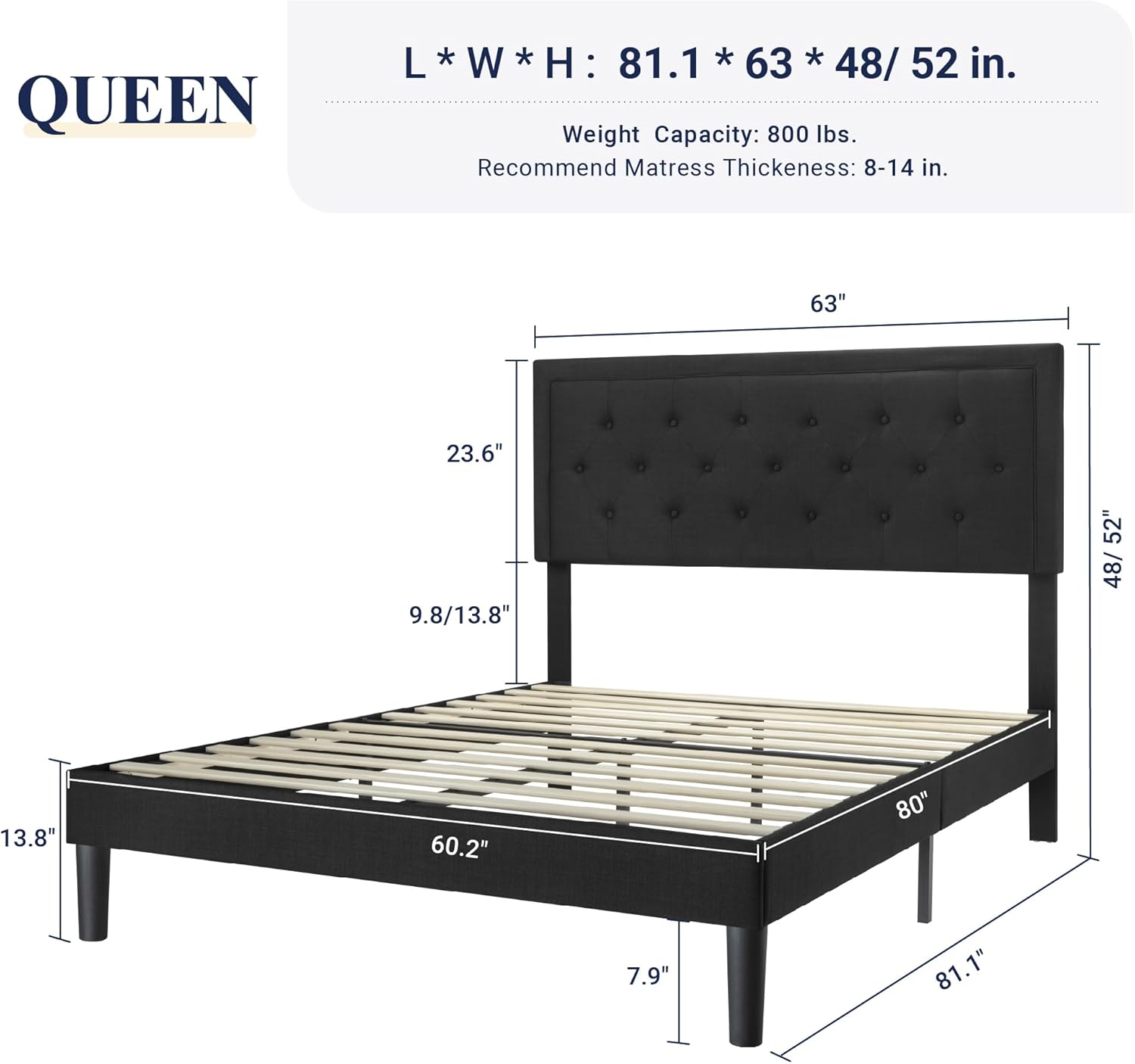 Introducing the Allewie Queen Size Upholstered Platform Bed Frame – the perfect blend of style, comfort, and durability for your bedroom. This sleek and modern bed frame features an adjustable headboard with elegant button tufting, adding a touch of sophistication to any space. Constructed with a sturdy wooden slat support system, this platform bed frame…